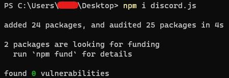 - 選擇習慣性使用安裝代碼安裝最新版的discord.js