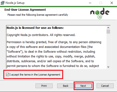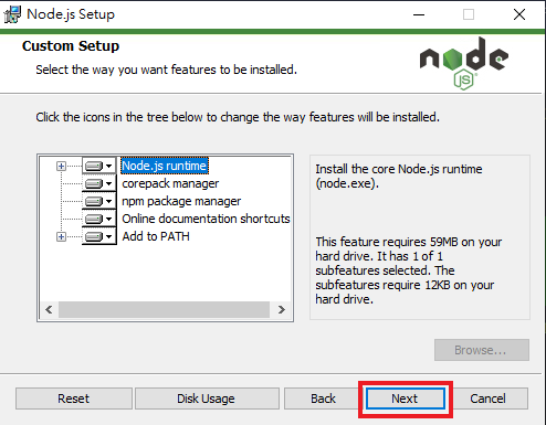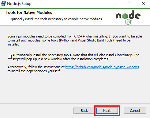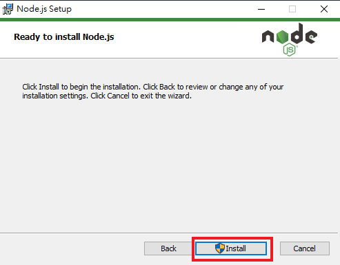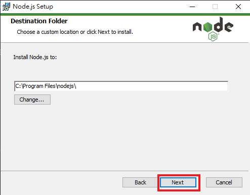 - 打開剛剛下載的 Node.js 安裝檔 然後點擊